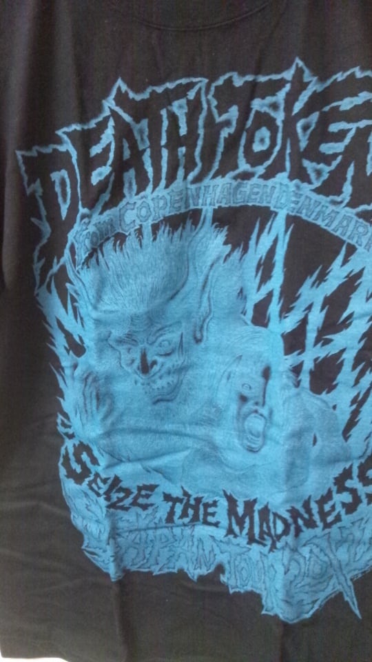 2012年夏に開催されたデンマーク・コペンハーゲンのDEATH TOKENジャパンツアーの記念Tシャツ。基本的にはツアー最中、会場のみで販売されていたモノです。ボディーは「黒のみ」/UNITED ATHLEです。Designed by SUGI